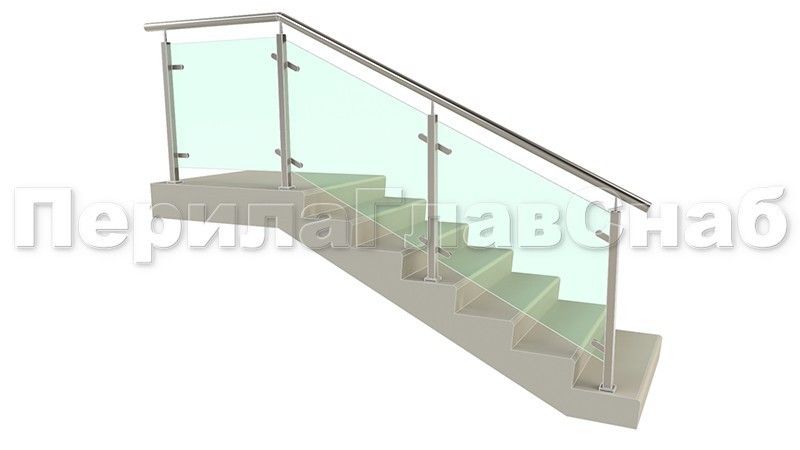 Ограждения для лестницы с поручнем на выносе с зажимными стеклодержателями и квадратными стойками