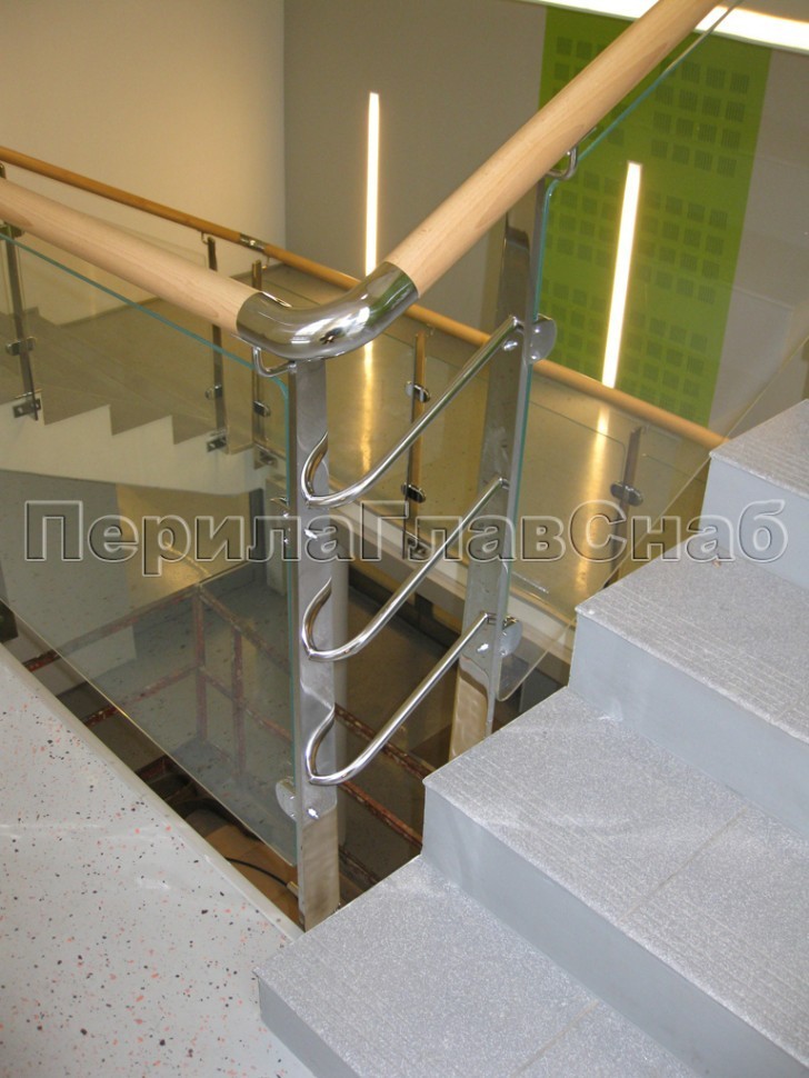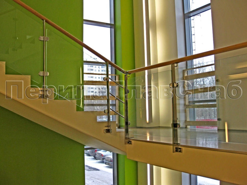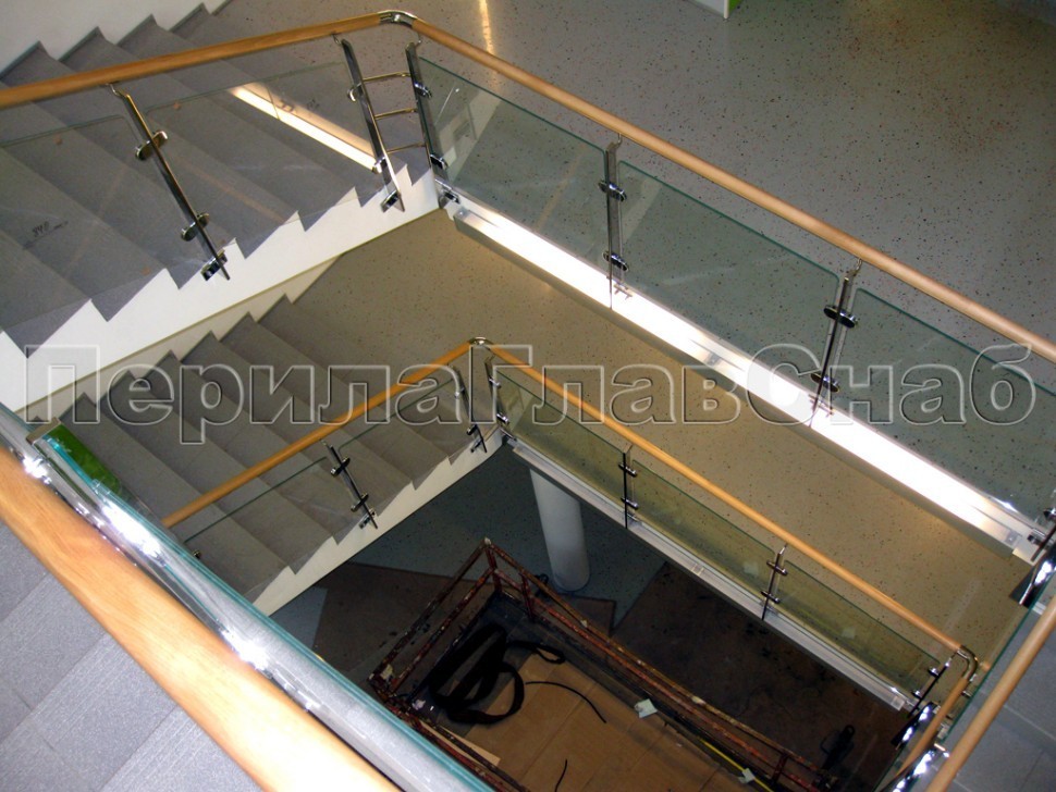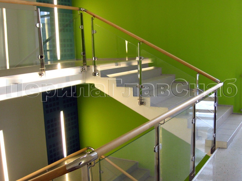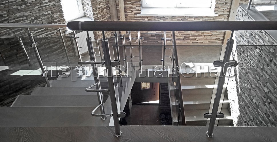 Ограждения лестницы без поручня с зажимными стеклодержателями и стойками