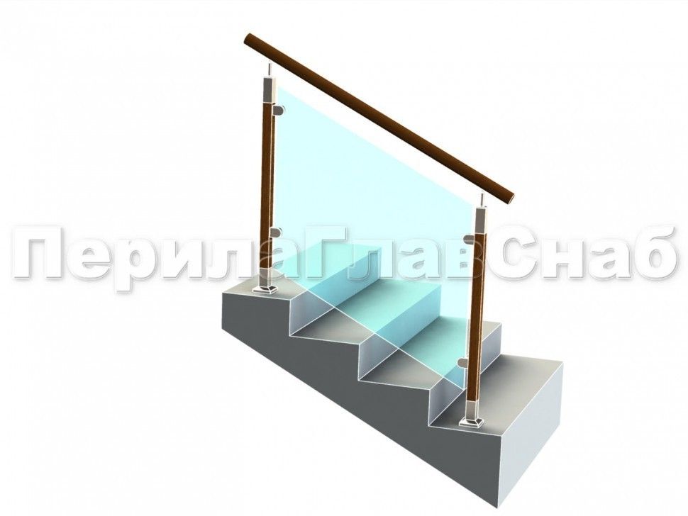 Записаться на встречу Ограждение с круглым деревянным поручнем с зажимными стеклодержателями и стойками с деревянными вставками