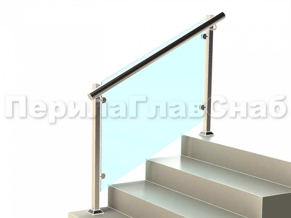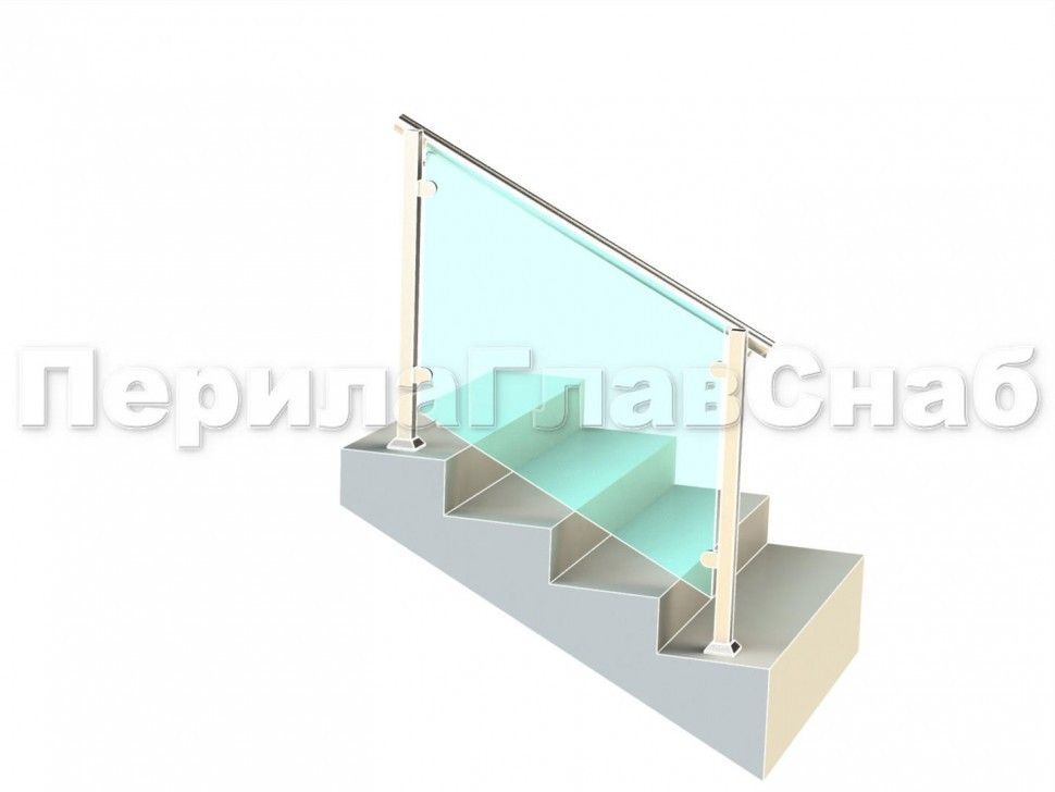 Ограждение лестницы с квадратными стойками и пластинчатыми стеклодержателями