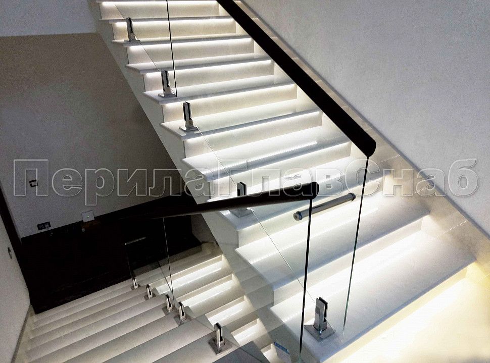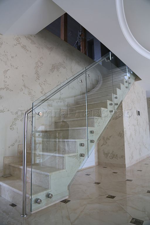 Ограждения лестницы без поручня с зажимными стеклодержателями и стойками