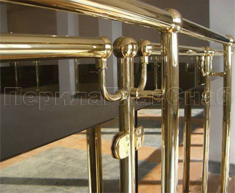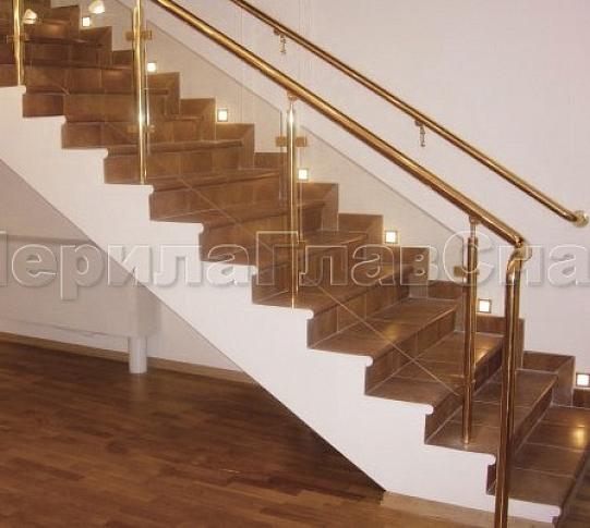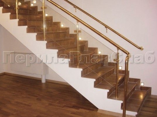 Лестничное ограждение с тремя ригелями и поручнем из латуни